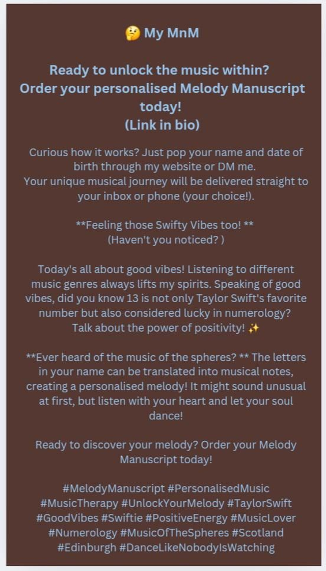 🎢 Ready to unlock the music within? Order your personalised Melody Manuscript today and take your place in the orchestra of life! 🌌